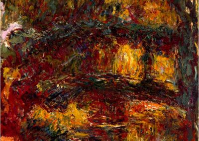 Durante los últimos treinta años de su existencia, el artista trabajó en torno a su jardín de agua de Giverny. En un prado vacío por el que pasaba un pequeño arroyo construyó un exuberante jardín en el que un gran estanque, colmado de nenúfares de todos los colores y rodeado por sauces y árboles exóticos, se cruzaba por un pequeño puente, de forma ovalada, que aparecería en numerosas pinturas de la época, como en El estanque de las ninfeas (1900, Museo de Orsay, París) o la lírica composición titulada El puente japonés (1918-1924, Museo de Orsay, París).