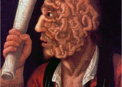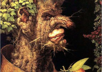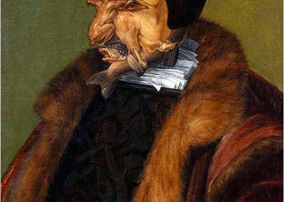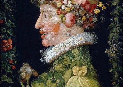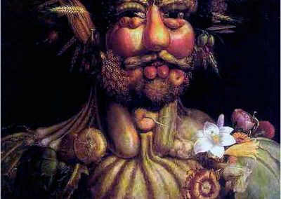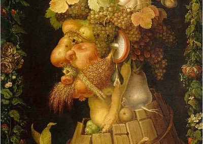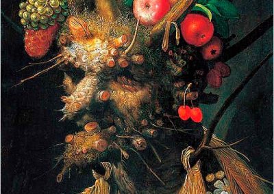 Giuseppe Arcimboldo, también conocido como Arcimboldi, nació en Milán el año 1527 y falleció el día 11 de julio de 1593. Fue un pintor italiano, conocido sobre todo por sus representaciones manieristas del rostro humano a partir de flores, frutas, plantas, animales u objetos; esto es, pintaba representaciones de estos objetos en el lienzo, colocados de tal manera que todo el conjunto tenía una semejanza reconocible con el sujeto retratado. Un proceso cercano a la anamorfosis en el contexto de las ilusiones ópticas.