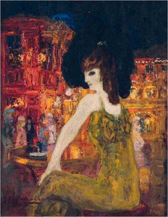 Primera época parisina (1894 – 1904). Su pintura evoluciona desde el verdeante paisajismo anterior al acusado colorido de la vida nocturna parisina. Se dedica a representar la vida galante de París, mediante figuras difuminadas, en los ambientes nocturnos de la Belle Epoque, captando también los estragos de la droga en las mujeres y el novedoso alumbrado eléctrico. Asimismo, pinta escenas de la vida gitana, y temática ecuestre. Gana, en este momento, gran parte de su fama, a causa de su visión modernista del mundo frívolo de París.