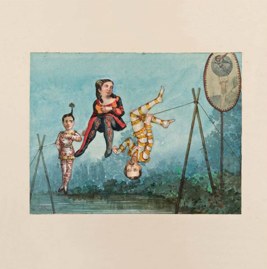 Trío de funambulistas sobre la cuerda: el príncipe Alfonso, la reina Isabel e, invertido, satirizando la reiterada sospechada de la homosexualidad, el rey consorte Francisco de Asís. Junto a la familia real como espectáculo circense la sátira abundaba en las disensiones familiares. En febrero de 1870, DP firmó una caricatura titulada «Una familia modelo» en la que vemos una acalorada riña en la que toman parte la reina, Francisco de Asís, que tira de los pelos al duque de Montpensier, Enrique de Borbón, el pretendiente carlista, y el príncipe Alfonso, entre otros. Por esas fechas, en Gil Blas, Ortego publicaba «El desafío en el Palacio Basiliski», una caricatura que mostraba a la reina en una disputa conyugal tirando de los pelos al rey consorte. Para entonces, Francisco de Asís había abandonado el palacio Basilewski, en París, y se había establecido con su fiel Antonio Ramón Meneses en Épinay-sur-Seine, donde falleció en 1902. En Gil Blas, en diciembre de 1864, se le criticaba de este modo: «Ya se ha descubierto otra de las muchas ocupaciones del señor Meneses. Además de ser diputado, amigo de sor Patrocinio, capitalista y neocatólico, el señor Meneses es administrador de casas».