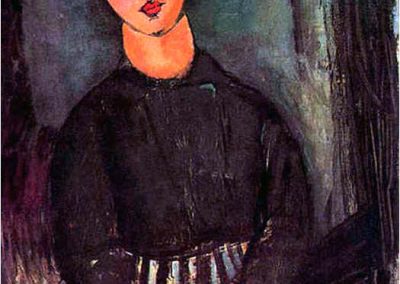 En 1914, cuando estalla la guerra, Amedeo Modigliani intenta alistarse pero su mala salud se lo impide. Retrató a Paul Guillaume, marchante que le compra algunos cuadros; Beatrice Hastings, una poetisa sudafricana con la que mantuvo una tormentosa relación amorosa, y, sobre todo a Lépold Zborowski, poeta polaco que, desde 1917, será, a la vez, representante y amigo.