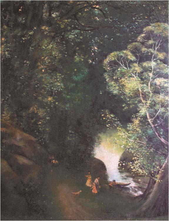 009 Ninfas en el jardín. 1930. Óleo sobre lienzo. 230 x 350 cm.