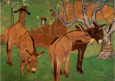 El cuadro de Timoteo Pérez Rubio viene a demostrar cómo se puede incluso llegar al sentimiento ¿franciscano? de unos borriquillos, sin cursilerías, ni sentimentalismos, ni ripios; cómo se pueden compaginar el sentimentalismo y la naturalidad con la composición y el estilo; cómo puede un pintor nuevo, que no ha tenido jamás medallas de primera, ofrecer un haz de maestrías que no hemos visto casi nunca reunidas en esos grandes cuadros que ahora se echan de menos y que fueron honrados antaño con toda clase de premios.