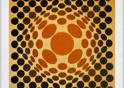 Victor Vasarely (Pecs, 1908 – París, 1997) Pintor húngaro afincado en París, asociado al arte cinético. Se empeñó en incorporar la dimensión temporal a la forma plástica, camino iniciado ya por los futuristas y Duchamp.